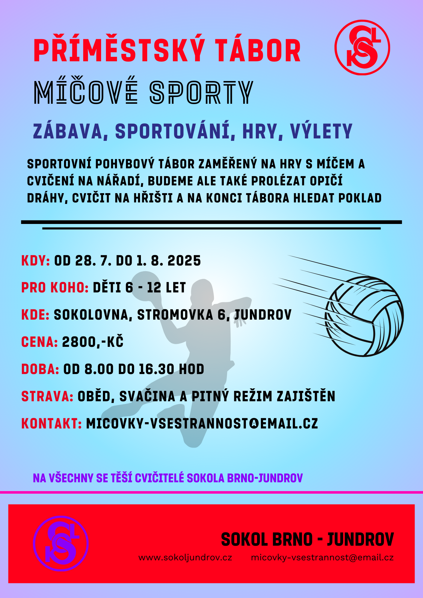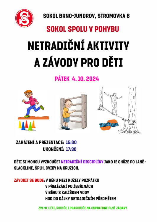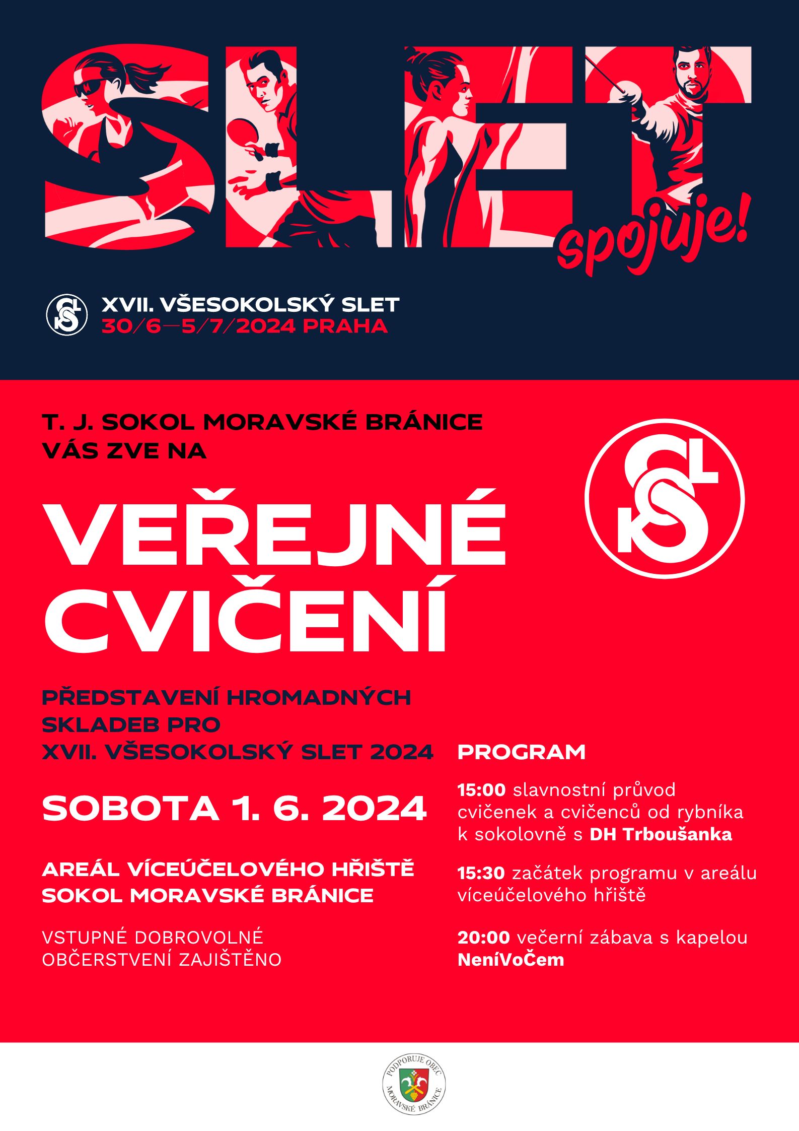 Veřejné cvičení 21. 6. 2025 od 15:30 na hřišti u sokolovny Nové Bránice.
